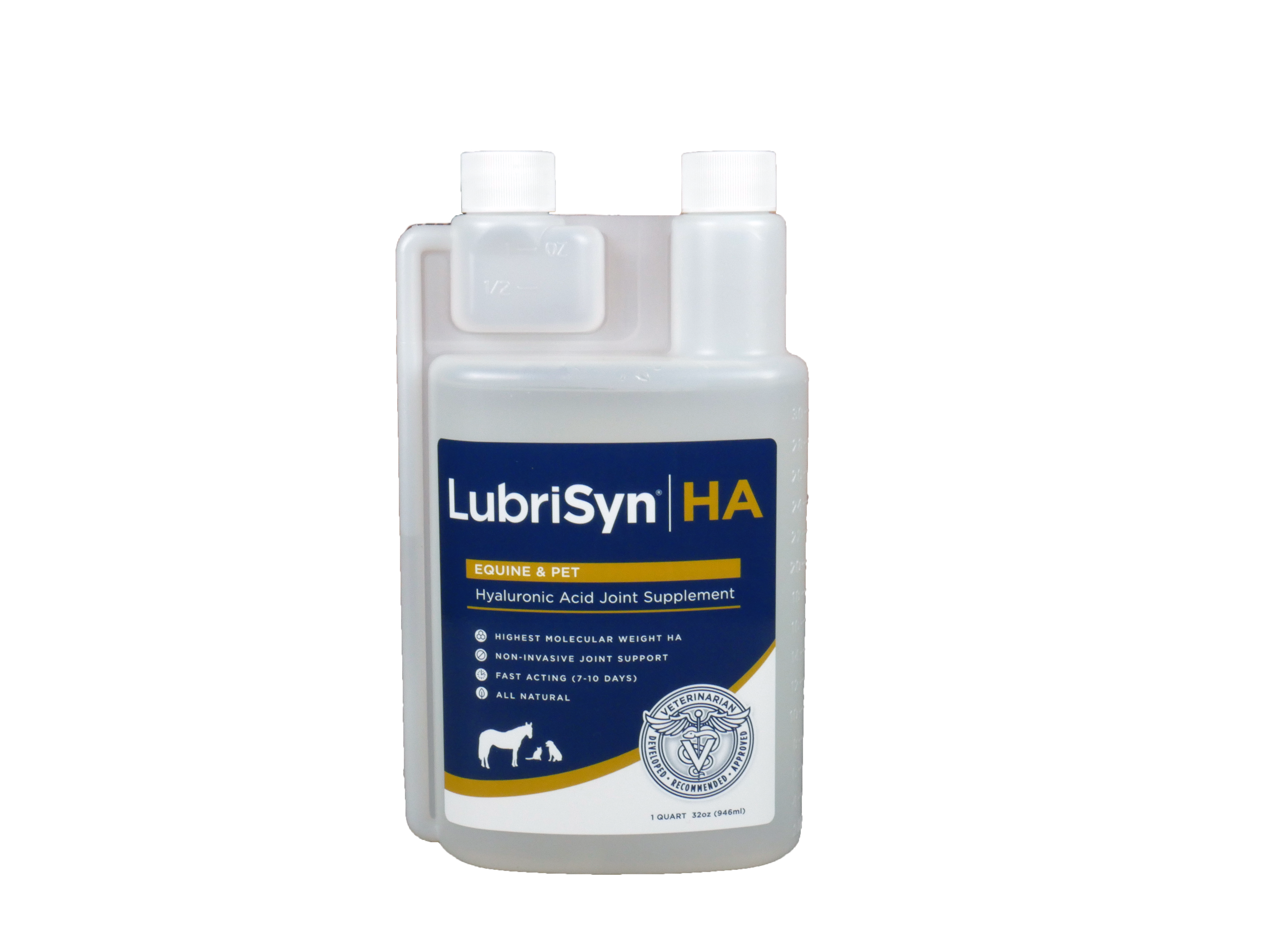 Hybrid Health är generalagent för veterinärtillverkade LubriSynHA och deras produkter med hyaluronsyra för människa, häst och andra husdjur. LubriSynHA har en molekylvikt på hela 2,4 miljoner Dalton! Det är nästan 1 miljon Dalton mer än övriga hyaluronsyre-tillskott. Ju högre molekylvikt desto mer vätska binder molekylen och stötdämpar och smörjer bättre i leden. LubriSynHA är den enda hyaluronsyran som är bioidentisk med den kroppsegna hyaluronsyran i leden. Hyaluronsyra är även antiinflammatorisk och assisterar vid vävnadsläkning. Därav har vi även en sårgel i sprayform som innehåller hyaluronsyra och det blodstoppande ämnet kitosan.